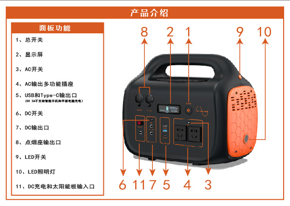 - វាគាំទ្រការបញ្ចូលថ្ម និងការបញ្ចេញថាមពលក្នុងពេលតែមួយ។ វាមានជួរធំទូលាយនៃការប្រើប្រាស់។ វាអាចត្រូវបានប្រើជាការផ្គត់ផ្គង់ថាមពល UPS តាមអ៊ីនធឺណិត ឬជាការផ្គត់ផ្គង់ថាមពលបម្រុងពេលមានអាសន្នខាងក្រៅ។ វាអាចបំពេញតាមបរិក្ខារពេទ្យក្នុងផ្ទះ ម៉ាស៊ីនព្រីនតូច ចង្កៀងផ្សេងៗ ឧបករណ៍កម្តៅអាងចិញ្ចឹមត្រី សៀវភៅកត់ត្រា និងការបោះជំរុំក្រៅផ្ទះ។ វាត្រូវបានប្រើនៅពេលដែលតម្រូវឱ្យមានភ្លើងបំភ្លឺ និងភ្លើង AC ក្នុងឱកាសដូចជាការថតរូប ការសង្គ្រោះគ្រោះអគ្គិភ័យ ការសង្គ្រោះបន្ទាន់ និងការសង្គ្រោះគ្រោះមហន្តរាយ។