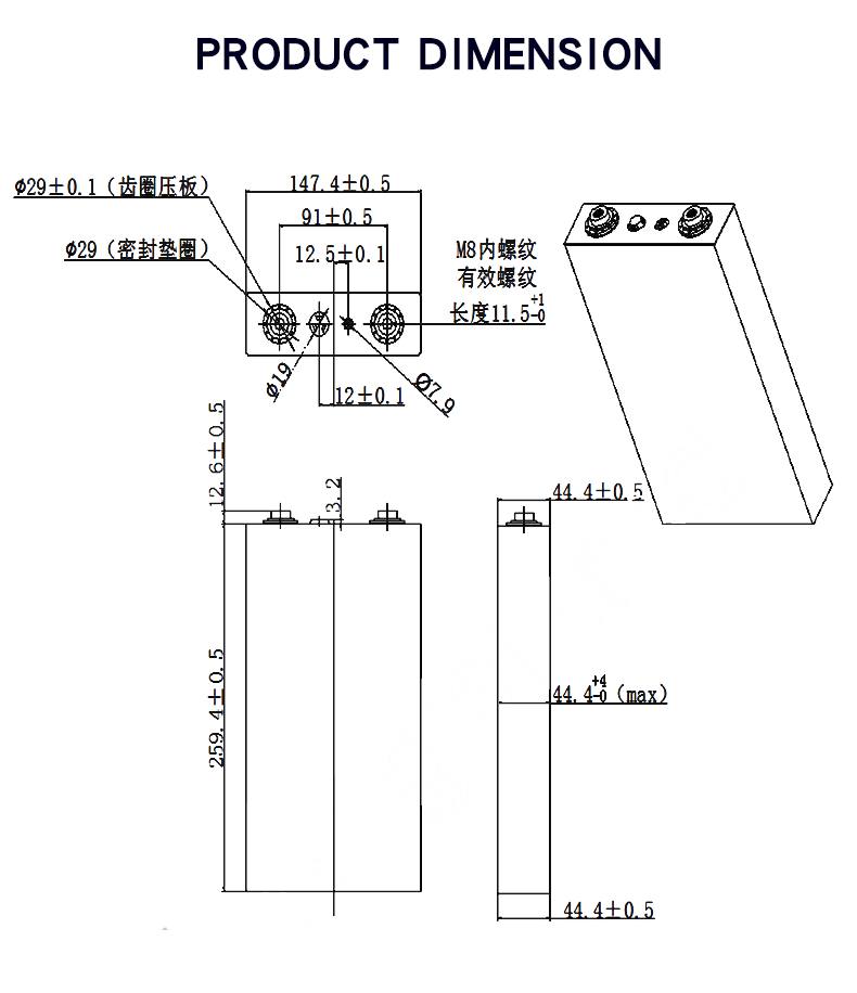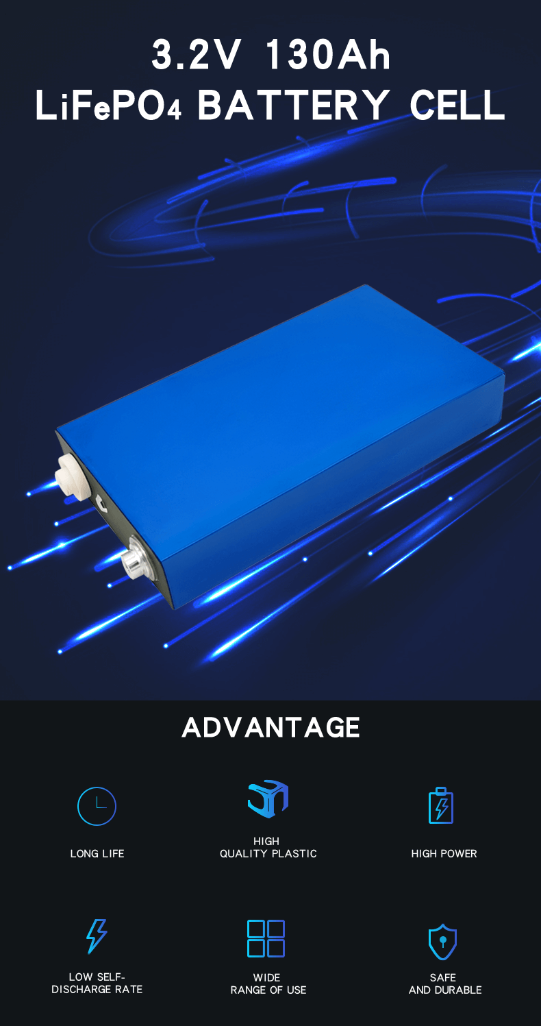 កោសិកាថ្ម LiFePO4 3.2V 130Ah ដែលមានវិញ្ញាបនប័ត្រ UL នេះមានគុណសម្បត្តិដូចខាងក្រោម៖