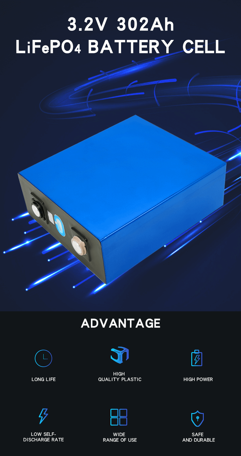 ថ្ម LiFePO4 ៣.២ វ៉ ៣០២ អា