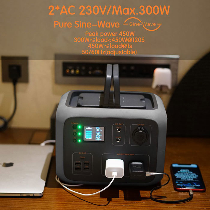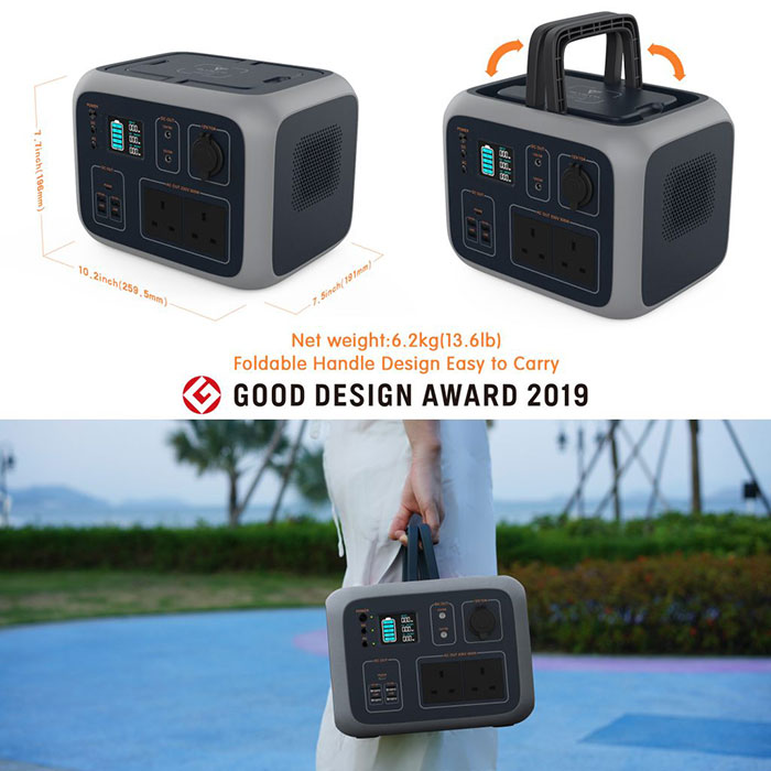 ស្ថានីយ៍ថាមពលអគ្គីសនីម៉ាស៊ីនភ្លើងដែលមានថាមពលអគ្គីសនីអាចផ្ទុកថាមពលអគ្គីសនីបាន ៥០០ វ៉ាត់ជាមួយនឹងការបញ្ចូលថាមពល ៣០០W DC / AC Inverter, DC / AC / USB សម្រាប់ការធ្វើដំណើរកម្សាន្តក្រៅជំរុំ។